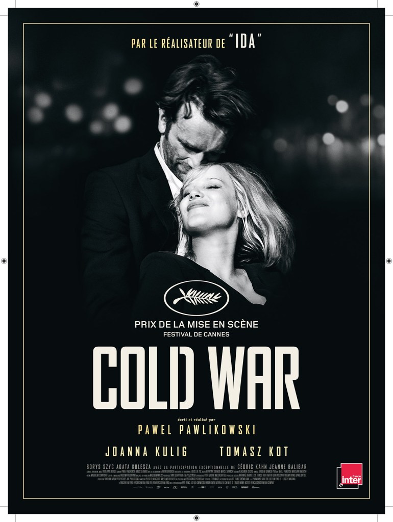 Lors du festival Télérama de 2018, j’ai découvert Zimna Wojna (Cold War), film en noir et blanc, de Pawel Pawlikowski au cinéma le Cratère à Toulouse (95 grande rue Saint-Michel à Toulouse / à 2min à pied de l’arrêt Saint-Michel sur la ligne B – un des meilleurs cinéma d’art et d’essai toulousain). Il raconte une histoire d’amour immense entre Wiktor, un musicien, et Zula, une chanteuse, tous deux polonais en 1950 s’étant connu lors que le Parti recrute de force des artistes pour un spectacle de propagande. Difficile de résumer un tel film voguant à travers les pays, traitant de la lutte personnelle et patriotique.